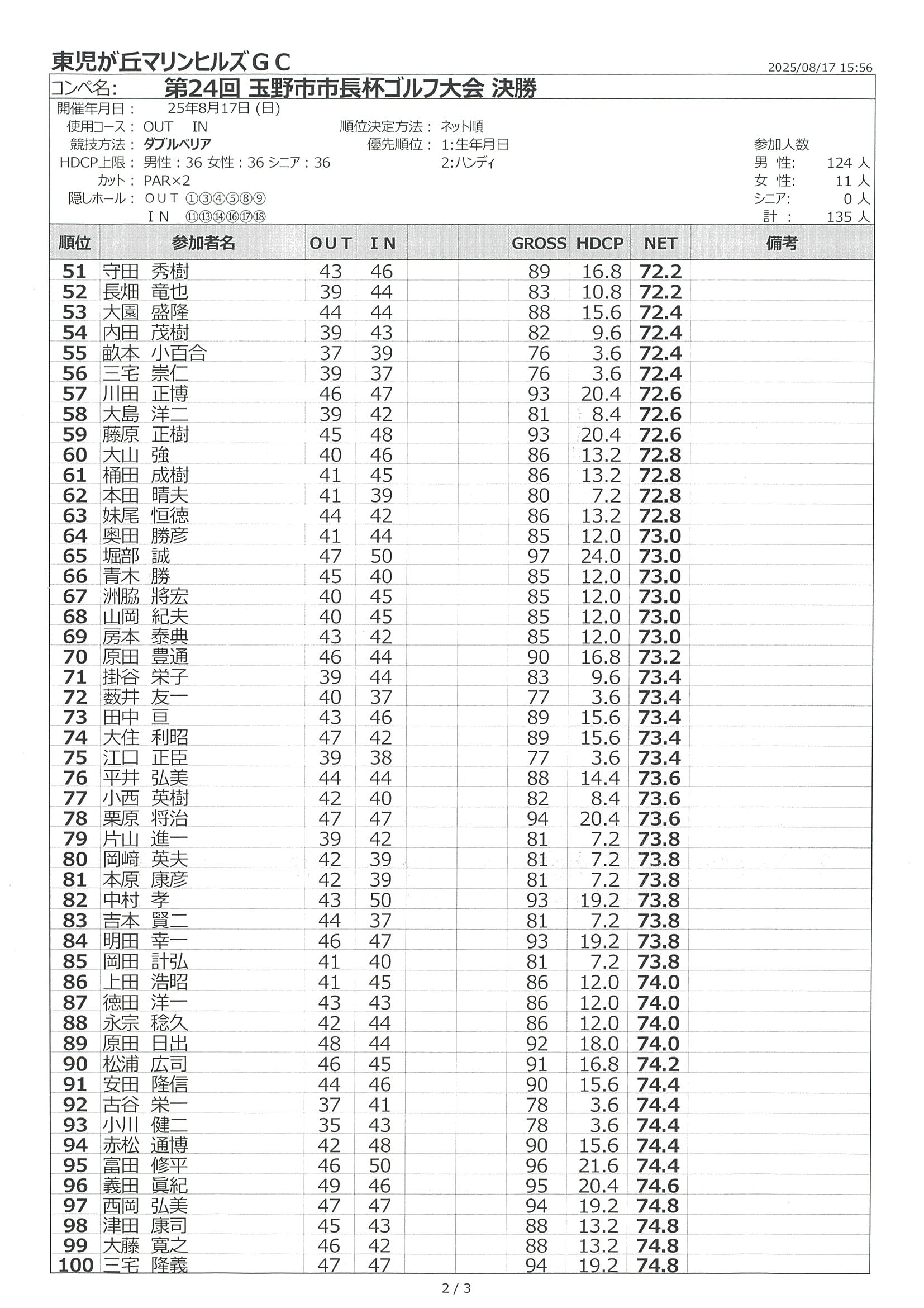 第24回玉野市市長杯(決勝) 競技結果
