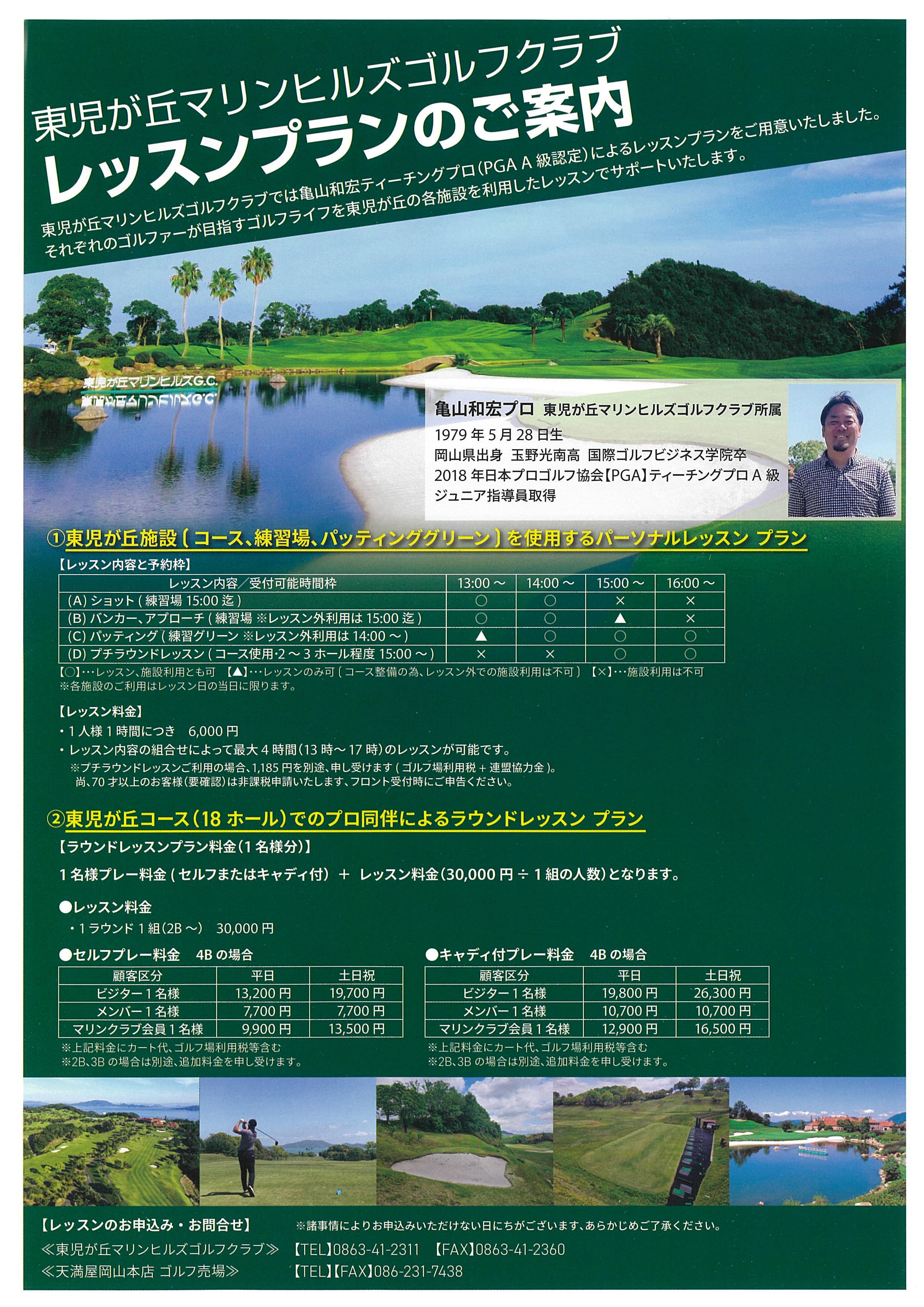 東児が丘マリンヒルズゴルフクラブでは亀山和宏ティーチングプロ(PGA A級認定)によるレッスンプランをご用意いたしました。