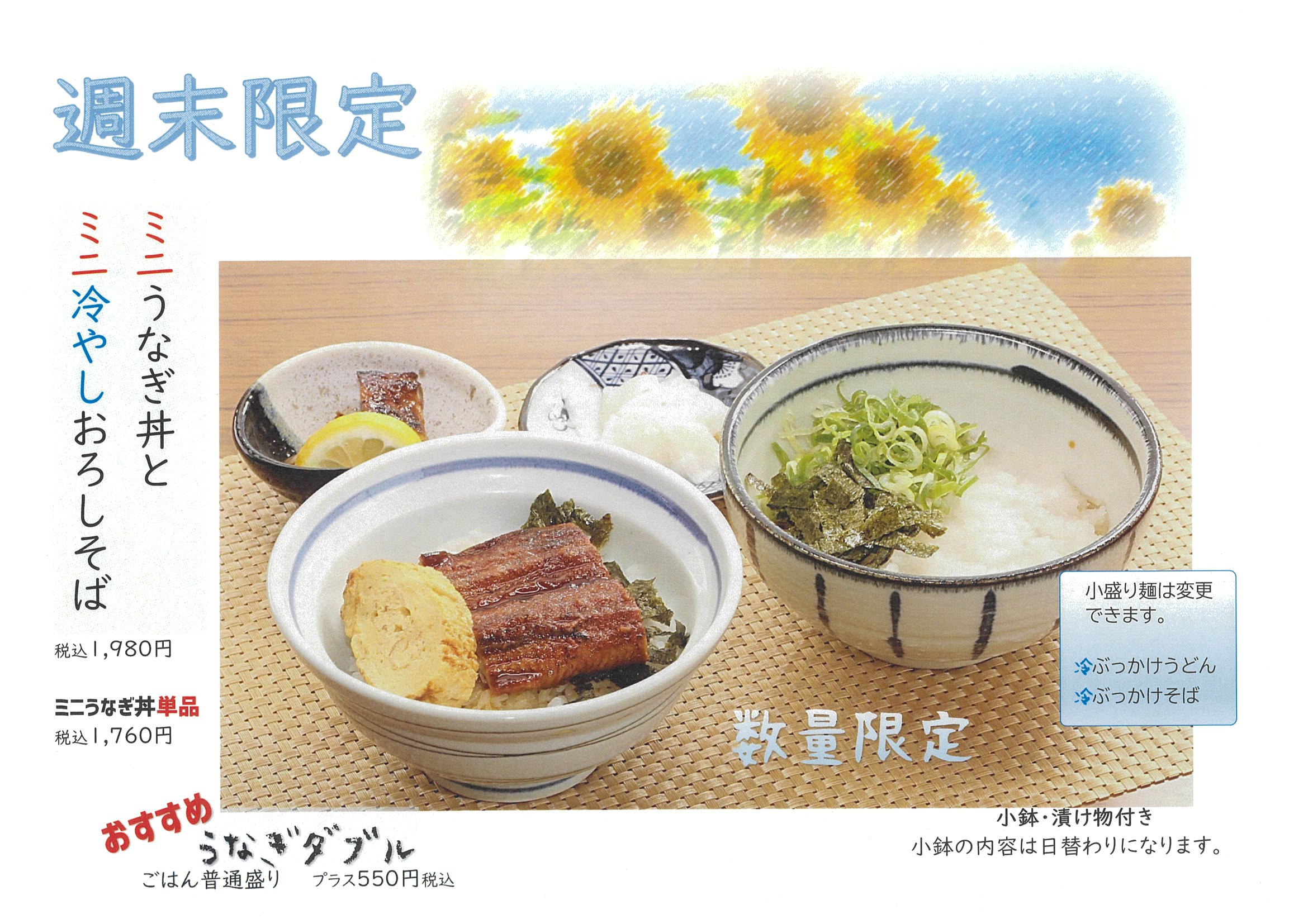 週末限定 ミニうなぎ丼とミニ冷やしおろしそばのご案内